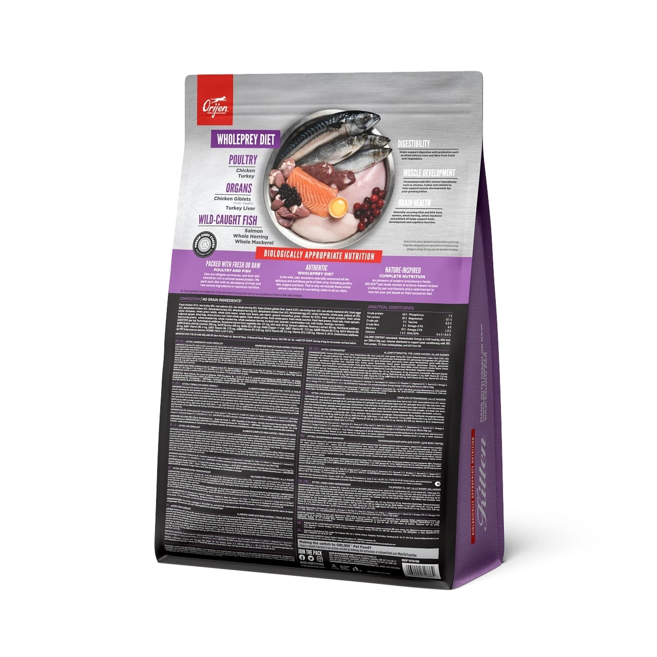 ORIJEN® Kittendieet is speciaal samengesteld om je kitten de voedingsstoffen te geven die hij nodig heeft om gezond en sterk te worden. Verpakt met 90%* hoogwaardige dierlijke ingrediënten zoals kip, kalkoen en zalm, helpt het de spierontwikkeling van je opgroeiende kitten te ondersteunen. Het bevat ook 15 verse of rauwe ingrediënten, waaronder WholePrey-ingrediënten zoals spiervlees, organen en botten, de meest sappige en voedzame delen van de prooi. Dit dieet helpt de hersenontwikkeling en cognitieve functie van je kitten te ondersteunen met natuurlijk voorkomende DHA en EPA uit zalm, hele makreel en haring, en koolvisolie. Je kitten gaat een mooie toekomst tegemoet als je hem de verse en rauwe dierlijke eiwitten geeft die hij nodig heeft.